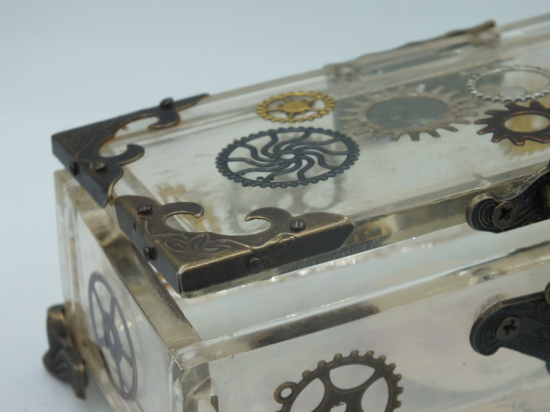 These boxes are hand crafted with all the fixtues and fittings added. It has a single pin hinge.