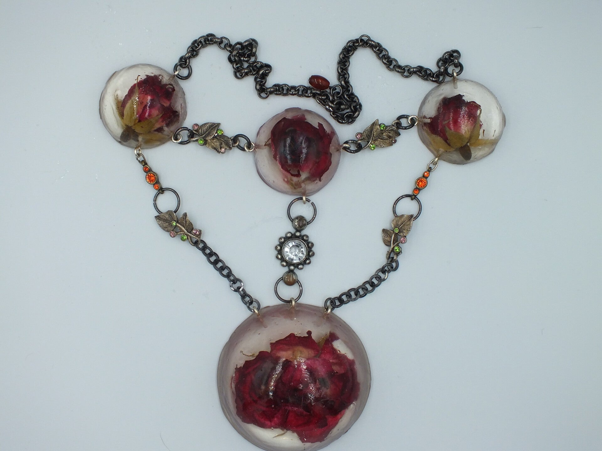 Alternative 4 piece rose necklace. This has real dried flowers is and is made using upcycled jewellery.