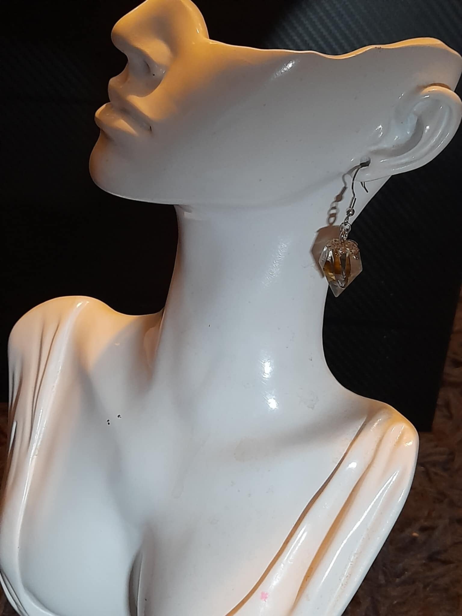 Diamond shaped drop earrings with real gemstones inside. Supplied on sliver, hyperallegenic hooks.
